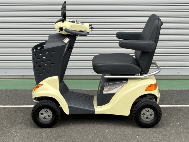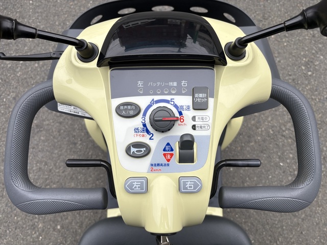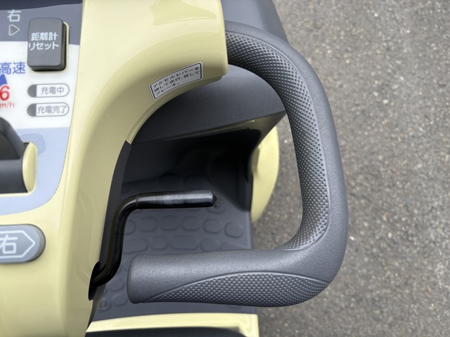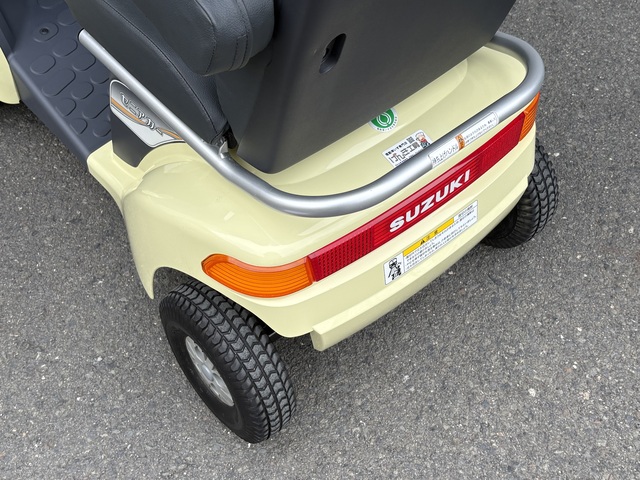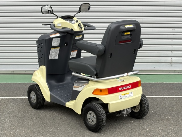 SUZUKI セニアカー ET4D7 Senior Car ET4D7 No.044 電動カート 大容量バスケットでお買い物もラクラク♪落ち着いた印象のペールイエローのカラーです。 店舗 東大阪本店 保証 3ヶ月間 203,000円(非課税) 新車時定価/368,000円(非課税) 参考程度: 買い物便利な25Lの大容量フロントバスケットが付いています。フロントフェンダーにキズがあります。 買い物便利な25Lの大容量フロントバスケットが付いています。フロントフェンダーにキズがあります。 前後輪の両方にサスペンションが装備されておりソフトな乗り心地です◎リアフェンダーにキズがあります。 空気入れ不要のノーパンクタイヤです。タイヤに少しひび割れがあります。 ハンドルに目立ったキズやひび割れ等はありません。操作パネルに日焼けはありません。 フロントフェンダーにキズがあります。 リアフェンダーにキズがあります。 座/背シート、ひじ掛けに目立ったキズや汚れはありません。 リアフェンダー足元にキズがあります。 フロントフェンダーに修正跡があります。 フロアパネルはキレイです。 アームレストはキレイです。キレイ ハンドルはキレイです。 連続走行距離 ※ 約33km バッテリー 中古 車輪 前5分山(NP) / 後5分山(NP) 充電器 本体内蔵式 カラー ペールイエロー サイズ 全長119×全幅65×全高108cm 重量 100kg 時速 約2~6km/h 充電時間 ※ 約0~12時間 年式 2014年 ※ 新車時データ(中古車につき、異なる場合があります。) 万一の紛失時も安心 スペアキー付き 乗り心地抜群。腰の悪い方には特におすすめ 高性能サスペンション お買い物に大活躍の大型バスケット 大型バスケット 「バックします」「右に曲がります」など音声でお知らせ 音声案内機能 走った距離を常に表示 距離メーター搭載 後方の自動車などにLEDライトで存在をお知らせ 後方LEDライト ウレタン入りタイヤでパンクする心配不要! ノーパンクタイヤ 長距離走行が可能 大容量バッテリー搭載 曲がり方に応じて自動で減速 コーナー自動減速機能 急な飛び出しなどでレバーを握りこんだら急停止 握りこみ緊急停止機能 両側のミラーで後方確認 両側ミラー 後方の自動車などに存在をお知らせ 後方反射板 10° 7.5cm 10cm 0120-41-2943 06-7664-8812 関連パーツ・オプション 納品時説明サービス スズキ用リヤバスケット セニアカー用ステッキホルダー取付プレート スズキ用ステッキホルダー(スズキ純正) スペーサーセット(ロング) 車体カバー(電動カート用) 延長コード(10m)