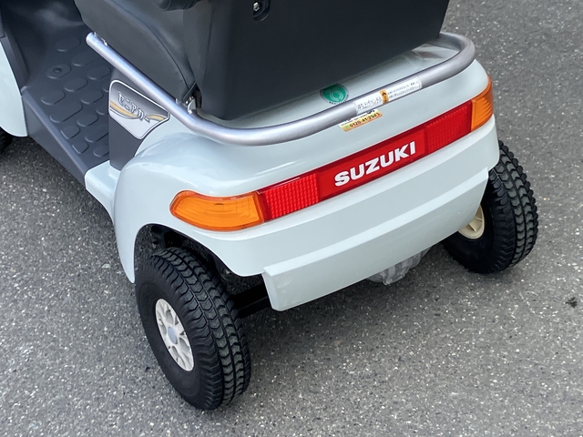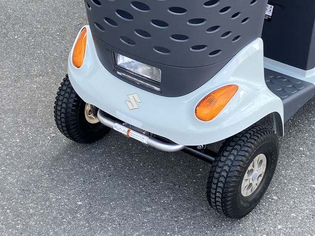 SUZUKI セニアカー ET4D7 Senior Car ET4D7 No.153 電動カート 大容量バスケットでお買い物もラクラク♪洗練された印象のペールブルーのカラーです。 店舗 広島店 保証 1年間 213,000円(非課税) 新車時定価/368,000円(非課税) 参考程度: 買い物便利な25Lの大容量フロントバスケットが付いています。 買い物便利な25Lの大容量フロントバスケットが付いています。 前後輪の両方にサスペンションが装備されておりソフトな乗り心地です◎リアフェンダーに少しキズがあります。 空気入れ不要のノーパンクタイヤです。 ハンドルは少し汚れがあります。 フロント部分に目立ったキズやひび割れ等はありません。 リアフェンダーに少しキズがあります。 座/背シート、ひじ掛けに目立ったキズや汚れはありません。 持ち上げハンドルの部分にタッチアップ跡があります。 ネジは一部剝がれがあります。 リアフェンダーに少しキズがあります。 リア持ち上げハンドルのシールに剝がれがあります。 座シートのシールに一部剝がれがあります。 連続走行距離 ※ 約33km バッテリー 中古 車輪 前7分山(NP) / 後5分山(NP) 充電器 本体内蔵式 カラー ペールブルー サイズ 全長119×全幅65×全高108cm 重量 100kg 時速 約2~6km/h 充電時間 ※ 約0~12時間 年式 2015年 ※ 新車時データ(中古車につき、異なる場合があります。) 万一の紛失時も安心 スペアキー付き 乗り心地抜群。腰の悪い方には特におすすめ 高性能サスペンション お買い物に大活躍の大型バスケット 大型バスケット 「バックします」「右に曲がります」など音声でお知らせ 音声案内機能 走った距離を常に表示 距離メーター搭載 後方の自動車などにLEDライトで存在をお知らせ 後方LEDライト ウレタン入りタイヤでパンクする心配不要! ノーパンクタイヤ 長距離走行が可能 大容量バッテリー搭載 曲がり方に応じて自動で減速 コーナー自動減速機能 急な飛び出しなどでレバーを握りこんだら急停止 握りこみ緊急停止機能 両側のミラーで後方確認 両側ミラー 後方の自動車などに存在をお知らせ 後方反射板 10° 7.5cm 10cm 0120-41-2943 06-7664-8812 関連パーツ・オプション 納品時説明サービス スズキ用リヤバスケット セニアカー用ステッキホルダー取付プレート スズキ用ステッキホルダー(スズキ純正) スペーサーセット(ロング) 車体カバー(電動カート用) 車体カバー(電動カート用)中古品 延長コード(10m)
