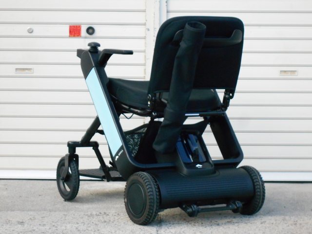 前後に折りたたみができるWHILL Model Fが入荷!純正オプションのステッキホルダーとバスケット付きです。