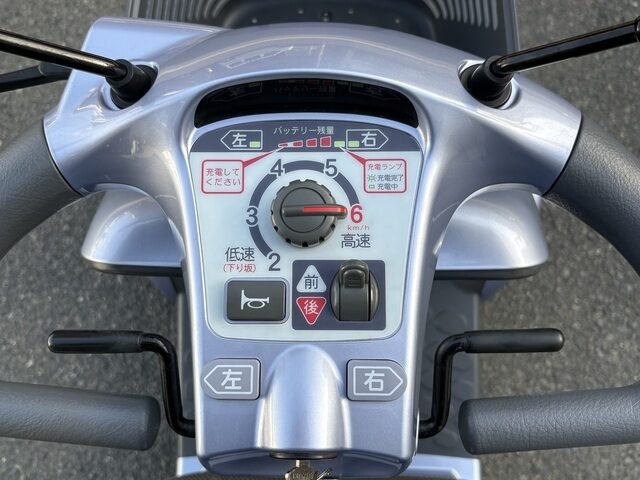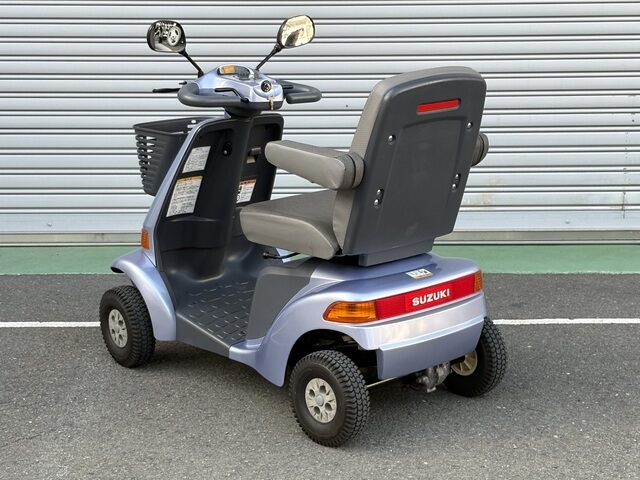 SUZUKI セニアカー ET4F Senior Car ET4F No.281 電動カート 全体的にキレイな状態の点検・整備済みセニアカー。上品な輝きを感じるブルーシルバーのカラーです。 店舗 東大阪本店 保証 1年間 175,000円(非課税) 新車時定価/348,000円(非課税) 参考程度: 前方にはヘッドライトに加え常時点滅する白色LEDを装備。カーブや曲がり角では自動的に速度を落とし走行します。 前方にはヘッドライトに加え常時点滅する白色LEDを装備。カーブや曲がり角では自動的に速度を落とし走行します。 レッグシールドが足元を保護し、風の強い日でも安心してお使いいただけます。 タイヤに目立ったキズやひび割れはありません。空気入れ不要のノーパンクタイヤ仕様です。 ハンドルに目立ったキズやひび割れ等はありません。 フロント部分に目立ったキズやひび割れ等はありません。フロントフェンダーに修正跡があります。 リア部分に目立ったキズやひび割れ等はありません。 座/背シートやひじ掛けに目立ったキズや汚れはありません。乗り降り便利な座シート回転機能付き! フロントフェンダーに修正跡があります。 ハンドルはキレイです。 フロアパネルはキレイです。 ひじ掛けはキレイです。 フロントバスケットはキレイです。 連続走行距離 ※ 約22km バッテリー 中古 車輪 前7分山(NP) / 後7分山(NP) 充電器 本体内蔵式 カラー ブルーシルバー サイズ 全長119×全幅65×全高107cm 重量 96kg 時速 約2~6km/h 充電時間 ※ 約0~12時間 年式 2012年 ※ 新車時データ(中古車につき、異なる場合があります。) 万一の紛失時も安心 スペアキー付き 乗り降りラクラク 座面回転 ウレタン入りタイヤでパンクする心配不要! ノーパンクタイヤ 長距離走行が可能 大容量バッテリー搭載 曲がり方に応じて自動で減速 コーナー自動減速機能 急な飛び出しなどでレバーを握りこんだら急停止 握りこみ緊急停止機能 両側のミラーで後方確認 両側ミラー 後方の自動車などに存在をお知らせ 後方反射板 10° 7.5cm 10cm 0120-41-2943 06-7664-8812 関連パーツ・オプション 納品時説明サービス セニアカー用大型フロントバスケット スズキ用リヤバスケット セニアカー用ステッキホルダー取付プレート スズキ用ステッキホルダー(スズキ純正) スペーサーセット(ロング) 車体カバー(電動カート用) 延長コード(10m)