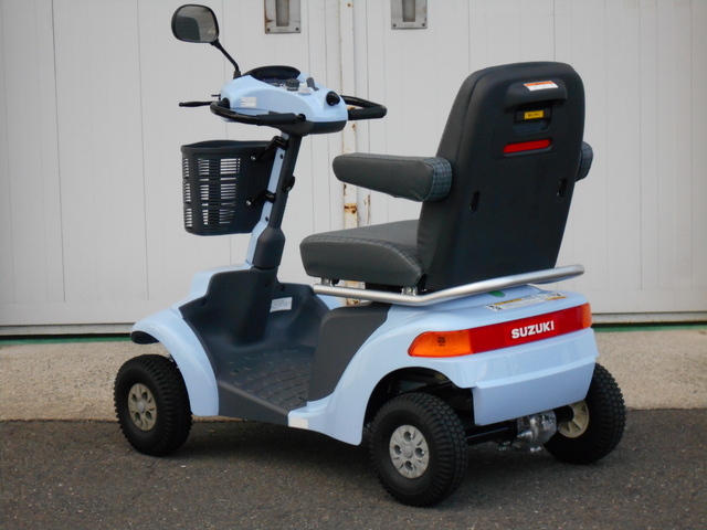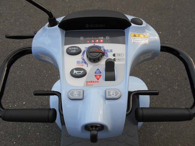 SUZUKI セニアカー ET4E9 Senior Car ET4E9 No.288 電動カート 2022年式でキズが少なく比較的キレイな車体です!スッキリとしたフロント部が特徴的なシニアカーです。 店舗 福岡店 保証 1年間 206,000円(非課税) 新車時定価/308,000円(非課税) 参考程度: 落ち着いたミストブルーカラーとフロント部がシャープな車体形状が特徴的なセニアカーです。 落ち着いたミストブルーカラーとフロント部がシャープな車体形状が特徴的なセニアカーです。 フロント部がスッキリとシャープな車体で、前方の視野が広がります。サイドミラーは片側のみ取付けです。 タイヤに目立ったキズやひび割れはありません。ノーパンクタイヤ仕様です。 ハンドルに目立ったキズやひび割れ等はありません。操作パネルに日焼けはありません。 フロント部に目立ったキズやひび割れはありません。 リア部に目立ったキズやひび割れはありません。 座/背シートやひじ掛けに目立ったキズや汚れはありません。 フロアマットは大きな歪みもなく全体的にキレイです。 リア持ち上げハンドル部に小さな線キズ等があります。 フロントバスケットはキズもなくキレイな状態です。 まだまだ十分な溝もあるフロントタイヤです。 リアタイヤもフロントタイヤと同じく状態は良いです。 連続走行距離 ※ 約19km 常温(20℃)、使用者最大体重(100kg)、満充電のバッテリーで平坦路を前進の最高速度で連続走行し、バッテリー100%放電までの距離を示します。 バッテリー 中古 車輪 前5分山(NP) / 後8分山(NP) 充電器 本体内蔵式 カラー ミストブルー サイズ 全長119.5×全幅65×全高114.5cm 重量 83kg 時速 約1~6km/h 充電時間 ※ 約0~15時間 年式 2022年 ※ 新車時データ(中古車につき、異なる場合があります。) 万一の紛失時も安心 スペアキー付き 「バックします」「右に曲がります」など音声でお知らせ 音声案内機能 ウレタン入りタイヤでパンクする心配不要! ノーパンクタイヤ 曲がり方に応じて自動で減速 コーナー自動減速機能 急な飛び出しなどでレバーを握りこんだら急停止 握りこみ緊急停止機能 後方の自動車などに存在をお知らせ 後方反射板 10° 7.5cm 10cm 0120-41-2943 06-7664-8812 関連パーツ・オプション 納品時説明サービス スズキ用ステッキホルダー(スズキ純正・取付費込) セニアカー用大型フロントバスケット スズキ用リヤバスケット スペーサーセット(ロング) セニアカー用ステッキホルダー取付プレート 車体カバー(電動カート用) 車体カバー(電動カート用)中古品 延長コード(10m)