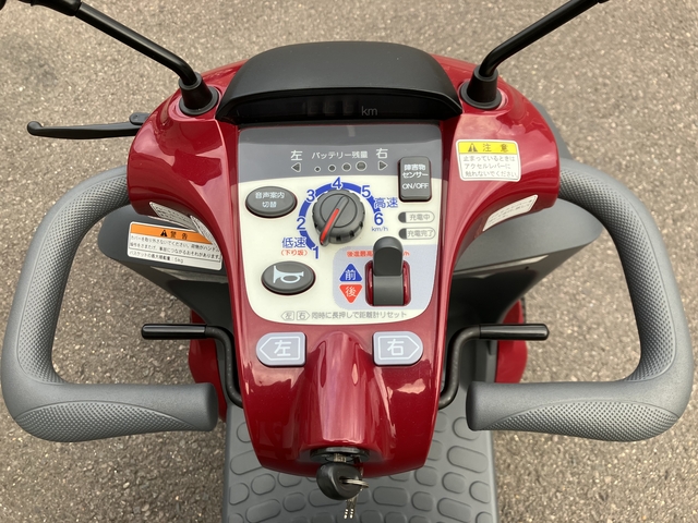 障害物検知サポート付きの最新型セニアカー!カラーは深みのあるメタリックレッドです。