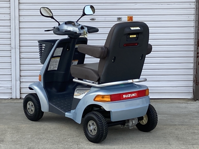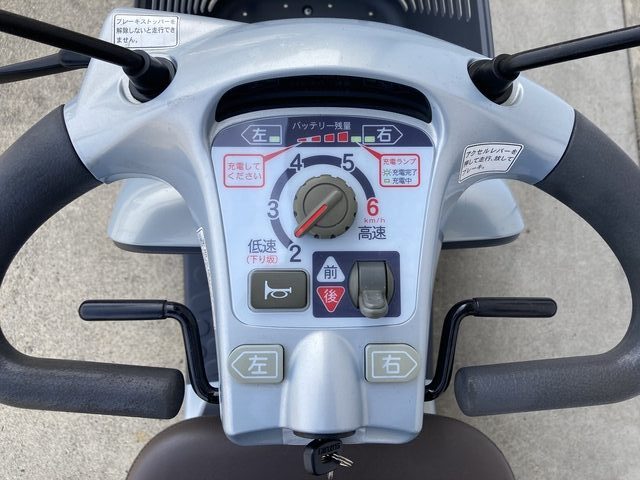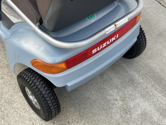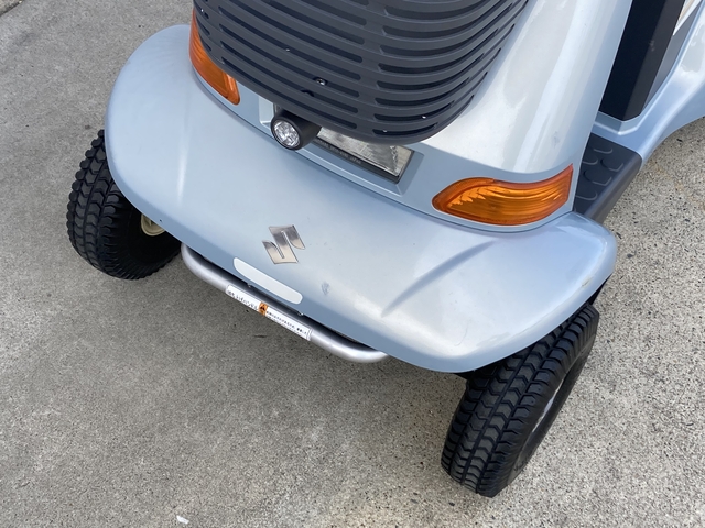 SUZUKI セニアカー ET4D6 Senior Car ET4D6 No.338 電動カート 使用感はありますが、機関系や足回りはしっかりしており、安心してお使いいただける一台です。 店舗 京都店 保証 1年間 150,000円(非課税) 新車時定価/348,000円(非課税) 参考程度: お買い物に便利なフロントバスケット付き◎フロントフェンダーにキズがあります。 お買い物に便利なフロントバスケット付き◎フロントフェンダーにキズがあります。 両サイドミラー付きで安心感アップ!後方からの視認性を高めるLEDライト付き。 タイヤに目立ったキズやひび割れ等はありません。ノーパンクタイヤ仕様です。 ハンドルに目立つ剝がれがあります。 フロントフェンダーにキズがあります。 リアフェンダーにキズがあります。 座/背シート、ひじ掛けに目立ったキズや汚れはありません。 フロントフェンダー左側にキズがあります。 フロントフェンダー右側にキズがあります。 リヤフェンダー左側にキズ及びタッチアップ跡があります。 ハンドル左側に目立つ剥がれがあります。 ハンドル右側に目立つ剥がれがあります。 連続走行距離 ※ 約33km 常温(20℃)、使用者最大体重(100kg)、満充電のバッテリーで平坦路を前進の最高速度で連続走行し、バッテリー100%放電までの距離を示します。 バッテリー 中古 車輪 前7分山(NP) / 後7分山(NP) 充電器 本体内蔵式 カラー オパールメタリック サイズ 全長119.5×全幅65×全高108cm 重量 98kg 時速 約2~6km/h 充電時間 ※ 約0~12時間 年式 2010年 ※ 新車時データ(中古車につき、異なる場合があります。) 万一の紛失時も安心 スペアキー付き 後方の自動車などにLEDライトで存在をお知らせ 後方LEDライト ウレタン入りタイヤでパンクする心配不要! ノーパンクタイヤ 長距離走行が可能 大容量バッテリー搭載 曲がり方に応じて自動で減速 コーナー自動減速機能 急な飛び出しなどでレバーを握りこんだら急停止 握りこみ緊急停止機能 両側のミラーで後方確認 両側ミラー 後方の自動車などに存在をお知らせ 後方反射板 10° 7.5cm 10cm 0120-41-2943 06-7664-8812 関連パーツ・オプション 納品時説明サービス セニアカー用大型フロントバスケット スズキ用リヤバスケット セニアカー用ステッキホルダー取付プレート スズキ用ステッキホルダー(スズキ純正) スペーサーセット(ロング) 車体カバー(電動カート用) 延長コード(10m)