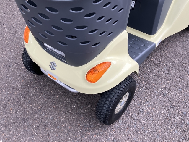• 車体側面やタイヤに目立ったキズやひび割れなどはありません。ノーパンクタイヤ仕様です。
