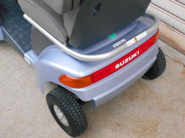 SUZUKI セニアカー ET4f6 Senior Car ET4F6 No.567 電動カート 前後フェンダーにキズの補修跡があります。タイヤは溝3㎜以上ありひびもなくキレイです! 店舗 小牧店 保証 1年間 183,000円(非課税) 新車時定価/348,000円(非課税) 参考程度: ひじ掛けは跳ね上げ式で移乗に便利!フロントフェンダーに目立つキズがあります。 ひじ掛けは跳ね上げ式で移乗に便利!フロントフェンダーに目立つキズがあります。 両サイドミラー付きです。フロント部は全体的に少しキズがあります。 タイヤに目立ったキズやひび割れはありません。 ハンドルに少し汚れがあります。パネルに日焼けがあります。 フロントフェンダーに目立つキズがあります。 リアフェンダーにキズがあります。 座/背シートに少し色落ちがあります。ひじ掛けに少し汚れがあります。 フロントフェンダー右前面に目立つキズの修正跡があります。 リアフェンダー左側前部に目立つキズの修正跡があります。 リアフェンダー右側面に目立つキズの修正跡があります。 リアフェンダー左側面下部に目立つキズの修正跡があります。 シートバックガーニッシュに色ムラがあります。 連続走行距離 ※ 約33km 常温(20℃)、使用者最大体重(100kg)、満充電のバッテリーで平坦路を前進の最高速度で連続走行し、バッテリー100%放電までの距離を示します。 バッテリー 中古 車輪 前8分山(NP) / 後8分山(NP) 充電器 本体内蔵式 カラー ブルーシルバー サイズ 全長119.5×全幅65×全高108cm 重量 98kg 時速 約2~6km/h 充電時間 ※ 約0~12時間 年式 2014年 ※ 新車時データ(中古車につき、異なる場合があります。) 万一の紛失時も安心 スペアキー付き 乗り心地抜群。腰の悪い方には特におすすめ 高性能サスペンション お買い物に大活躍の大型バスケット 大型バスケット 「バックします」「右に曲がります」など音声でお知らせ 音声案内機能 走った距離を常に表示 距離メーター搭載 後方の自動車などにLEDライトで存在をお知らせ 後方LEDライト ウレタン入りタイヤでパンクする心配不要! ノーパンクタイヤ 長距離走行が可能 大容量バッテリー搭載 曲がり方に応じて自動で減速 コーナー自動減速機能 急な飛び出しなどでレバーを握りこんだら急停止 握りこみ緊急停止機能 両側のミラーで後方確認 両側ミラー 後方の自動車などに存在をお知らせ 後方反射板 10° 7.5cm 10cm 0120-41-2943 06-7664-8812 関連パーツ・オプション 納品時説明サービス スズキ用ステッキホルダー(スズキ純正・取付費込) セニアカー用大型フロントバスケット スズキ用リヤバスケット スペーサーセット(ロング) セニアカー用ステッキホルダー取付プレート 車体カバー(電動カート用) 車体カバー(電動カート用)中古品 延長コード(10m)