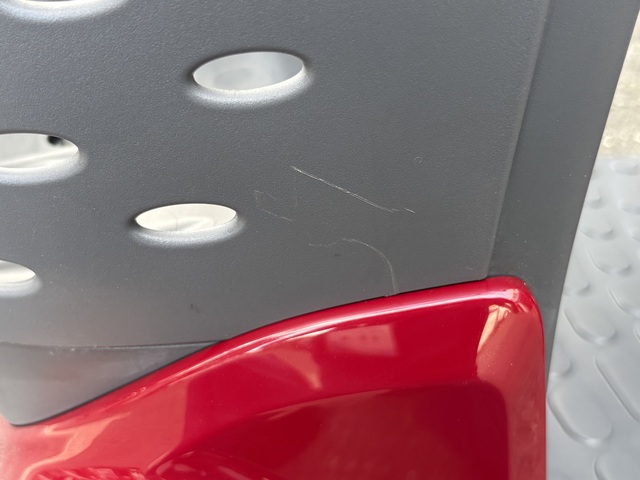 • 車体側面やタイヤに目立ったキズやひび割れはありません。ノーパンクタイヤ仕様です。