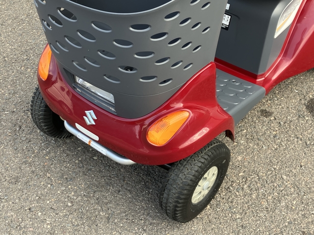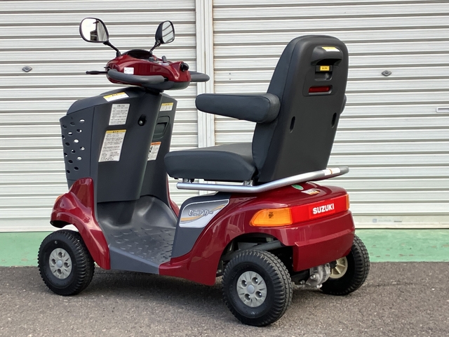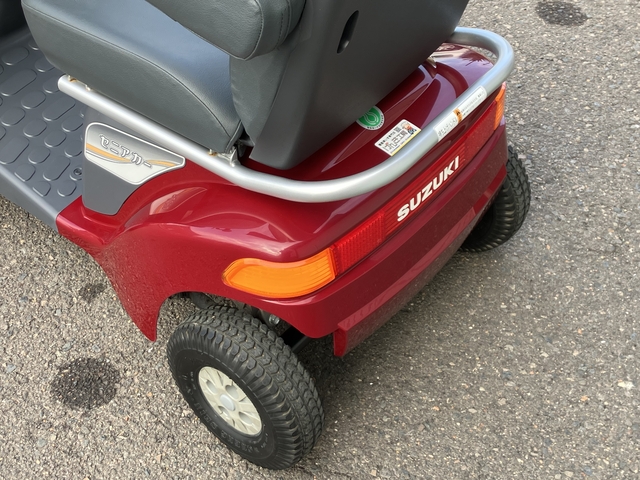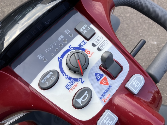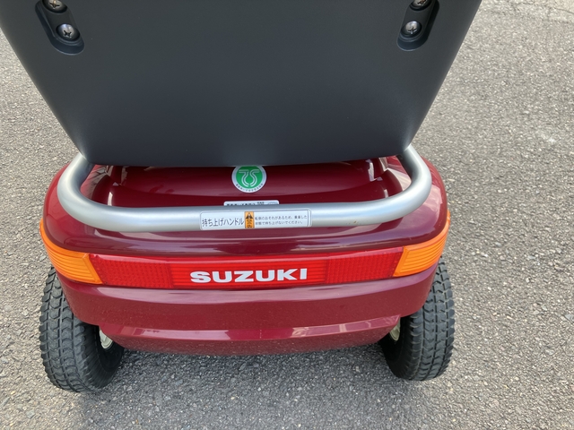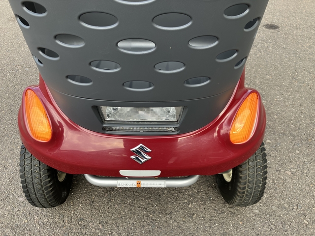 SUZUKI セニアカー ET4D7 Senior Car ET4D7 No.656 電動カート 操作パネルは新品に交換済み!深みのあるメタリックレッドが人気のセニアカーが入荷しました。 店舗 香川丸亀店 保証 1年間 219,000円(非課税) 新車時定価/368,000円(非課税) 参考程度: 買い物便利な25Lの大容量フロントバスケットが付いています。全体的に小さなキズがあります。 買い物便利な25Lの大容量フロントバスケットが付いています。全体的に小さなキズがあります。 前後輪の両方にサスペンションが装備されておりソフトな乗り心地です◎ タイヤに目立ったキズやひび割れはありません。空気入れ不要のノーパンクタイヤです。 ハンドルに目立ったキズやひび割れ等はありません。操作パネルに日焼けはありません。 フロント部分に目立ったキズやひび割れ等はありません。 リア部分に目立ったキズやひび割れ等はありません。 座/背シート、ひじ掛けに目立ったキズや汚れはありません。 全体的に小さなキズがあります。視認性を高めるLEDヘッドライトつき。 フロアパネルはキズも少なくキレイです。 全体的に小さなキズがあります。 操作パネルは新品です。 フロントバスケットはキズも少なくキレイです。 連続走行距離 ※ 約33km バッテリー 中古 車輪 前6分山(NP) / 後7分山(NP) 充電器 本体内蔵式 カラー メタリックレッド サイズ 全長119×全幅65×全高108cm 重量 100kg 時速 約2~6km/h 充電時間 ※ 約0~12時間 年式 2016年 ※ 新車時データ(中古車につき、異なる場合があります。) 万一の紛失時も安心 スペアキー付き 乗り心地抜群。腰の悪い方には特におすすめ 高性能サスペンション お買い物に大活躍の大型バスケット 大型バスケット 「バックします」「右に曲がります」など音声でお知らせ 音声案内機能 走った距離を常に表示 距離メーター搭載 後方の自動車などにLEDライトで存在をお知らせ 後方LEDライト ウレタン入りタイヤでパンクする心配不要! ノーパンクタイヤ 長距離走行が可能 大容量バッテリー搭載 曲がり方に応じて自動で減速 コーナー自動減速機能 急な飛び出しなどでレバーを握りこんだら急停止 握りこみ緊急停止機能 両側のミラーで後方確認 両側ミラー 後方の自動車などに存在をお知らせ 後方反射板 10° 7.5cm 10cm 0120-41-2943 06-7664-8812 関連パーツ・オプション 納品時説明サービス スズキ用リヤバスケット セニアカー用ステッキホルダー取付プレート スズキ用ステッキホルダー(スズキ純正) スペーサーセット(ロング) 車体カバー(電動カート用) 車体カバー(電動カート用)中古品 延長コード(10m)