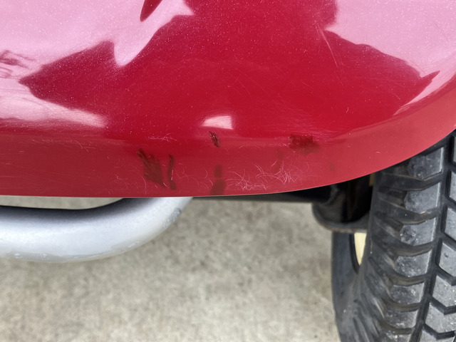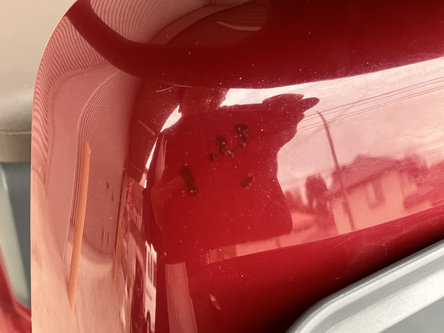 車体カラーは視認性の高いメタリックレッドです!前後フェンダーにキズや補修跡があります。