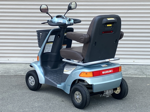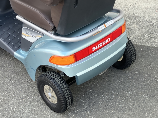 SUZUKI セニアカー ET4D6 Senior Car ET4D6 No.755 電動カート 全体的にキズや補修跡がありますが、しっかり整備をしているので安心してお乗りいただけます! 店舗 広島店 保証 1年間 173,000円(非課税) 新車時定価/348,000円(非課税) 参考程度: お買い物に便利なフロントバスケット付き◎ お買い物に便利なフロントバスケット付き◎ 両サイドミラー付きで安心感アップ!後方からの視認性を高めるLEDライト付き。 タイヤに目立ったキズやひび割れ等はありません。ノーパンクタイヤ仕様です。 ハンドル部分に変色と剥がれがあります。操作パネルに日焼けはありません。 フロントフェンダーにキズやタッチアップ補修があります。 リアフェンダーにタッチアップ補修があります。 座シートの一部に亀裂があります。 フロントフェンダーにキズがあります。 フロントフェンダーにタッチアップ補修があります。 リアフェンダーにタッチアップ補修があります。 座シートの一部に亀裂があります。 ハンドル部分に変色と剥がれがあります。 連続走行距離 ※ 約33km 常温(20℃)、使用者最大体重(100kg)、満充電のバッテリーで平坦路を前進の最高速度で連続走行し、バッテリー100%放電までの距離を示します。 バッテリー 中古 車輪 前9分山(NP) / 後8分山(NP) 充電器 本体内蔵式 カラー ブルーシルバー サイズ 全長119.5×全幅65×全高108cm 重量 98kg 時速 約2~6km/h 充電時間 ※ 約0~12時間 年式 2012年 ※ 新車時データ(中古車につき、異なる場合があります。) 万一の紛失時も安心 スペアキー付き 後方の自動車などにLEDライトで存在をお知らせ 後方LEDライト ウレタン入りタイヤでパンクする心配不要! ノーパンクタイヤ 長距離走行が可能 大容量バッテリー搭載 曲がり方に応じて自動で減速 コーナー自動減速機能 急な飛び出しなどでレバーを握りこんだら急停止 握りこみ緊急停止機能 両側のミラーで後方確認 両側ミラー 後方の自動車などに存在をお知らせ 後方反射板 10° 7.5cm 10cm 0120-41-2943 06-7664-8812 関連パーツ・オプション 納品時説明サービス セニアカー用大型フロントバスケット スズキ用リヤバスケット セニアカー用ステッキホルダー取付プレート スズキ用ステッキホルダー(スズキ純正) スペーサーセット(ロング) 車体カバー(電動カート用) 車体カバー(電動カート用)中古品 延長コード(10m)