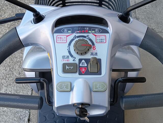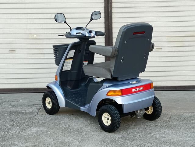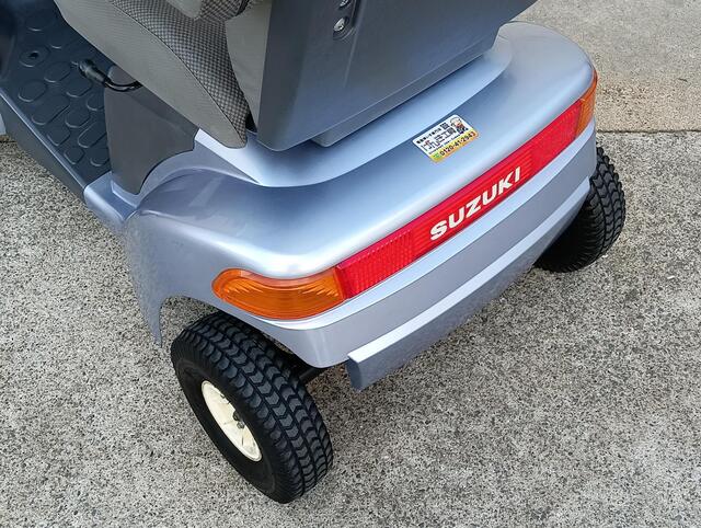 SUZUKI セニアカー ET4D Senior Car ET4D No.819 電動カート 全体的にキズがありますが、まだまだ走ります!モーターブラシは新品に交換済。 店舗 和歌山店 保証 1年間 130,000円(非課税) 新車時定価/348,000円(非課税) 参考程度: 移乗に便利な座席回転機能付き! 移乗に便利な座席回転機能付き! 両サイドミラー付きで安心感アップ!後方からの視認性を高める、LED点滅ランプ付き。 タイヤに目立ったキズやひび割れはありません。ノーパンクタイヤ仕様です。 操作パネルに少し日焼けがあります。 フロントフェンダーにキズがあります。 リアフェンダーに少しキズがあります。 座/背シートに少し色落ちがあります。ひじ掛けに少し色落ちがあります。 フロントフェンダーにキズがあります。 リアフェンダーに少しキズがあります。 リアフェンダー左側にキズがあります。 リアフェンダー右側にキズがあります。 ステップにキズがあります。 連続走行距離 ※ 約22km バッテリー 中古 車輪 前6分山(NP) / 後5分山(NP) 充電器 本体内蔵式 カラー ブルーシルバー サイズ 全長119×全幅65×全高107cm 重量 96kg 時速 約2~6km/h 充電時間 ※ 約0~12時間 年式 2005年 ※ 新車時データ(中古車につき、異なる場合があります。) 万一の紛失時も安心 スペアキー付き 後方の自動車などにLEDライトで存在をお知らせ 後方LEDライト 乗り降りラクラク 座面回転 ウレタン入りタイヤでパンクする心配不要! ノーパンクタイヤ 長距離走行が可能 大容量バッテリー搭載 曲がり方に応じて自動で減速 コーナー自動減速機能 急な飛び出しなどでレバーを握りこんだら急停止 握りこみ緊急停止機能 両側のミラーで後方確認 両側ミラー 後方の自動車などに存在をお知らせ 後方反射板 10° 7.5cm 10cm 0120-41-2943 06-7664-8812 関連パーツ・オプション 納品時説明サービス セニアカー用大型フロントバスケット セニアカー用ステッキホルダー取付プレート スズキ用ステッキホルダー(スズキ純正・取付費込) スズキ用リヤバスケット スペーサーセット(ロング) 車体カバー(電動カート用) 車体カバー(電動カート用)中古品 延長コード(10m)
