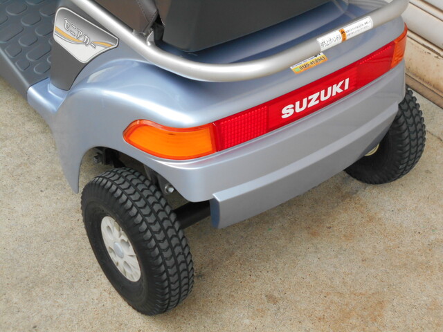 SUZUKI セニアカー ET4D6 Senior Car ET4D6 No.853 電動カート 全体的にキズはありますが、点検・整備済みで安心の一台。お買い物やお出掛けに便利なバスケット付きです! 店舗 小牧店 保証 1年間 170,000円(非課税) 新車時定価/348,000円(非課税) 参考程度: お買い物に便利なフロントバスケット付き。全体的にキズがあります。 お買い物に便利なフロントバスケット付き。全体的にキズがあります。 両サイドミラー付きで安心感アップ!ひじ掛けは跳ね上げ式で、移乗もスムーズに行えます。 タイヤに少しひび割れがあります。空気入れ不要のノーパンクタイヤです。 ハンドルに少し汚れがあります。 フロントフェンダーにキズがあります。 リアフェンダーにキズがあります。 座/背シートに少し汚れがあります。 リアフェンダー左側にキズの修正跡があります。 フロントバンパー下部にキズの修正跡があります。 フロントバンパー中央に線キズがあります。 リアフェンダー右側にキズの修正跡があります。 タイヤに少しひび割れがあります。 連続走行距離 ※ 約33km 常温(20℃)、使用者最大体重(100kg)、満充電のバッテリーで平坦路を前進の最高速度で連続走行し、バッテリー100%放電までの距離を示します。 バッテリー 中古 車輪 前6分山(NP) / 後7分山(NP) 充電器 本体内蔵式 カラー ブルーシルバー サイズ 全長119.5×全幅65×全高108cm 重量 98kg 時速 約2~6km/h 充電時間 ※ 約0~12時間 年式 2013年 ※ 新車時データ(中古車につき、異なる場合があります。) 万一の紛失時も安心 スペアキー付き 後方の自動車などにLEDライトで存在をお知らせ 後方LEDライト ウレタン入りタイヤでパンクする心配不要! ノーパンクタイヤ 長距離走行が可能 大容量バッテリー搭載 曲がり方に応じて自動で減速 コーナー自動減速機能 急な飛び出しなどでレバーを握りこんだら急停止 握りこみ緊急停止機能 両側のミラーで後方確認 両側ミラー 後方の自動車などに存在をお知らせ 後方反射板 10° 7.5cm 10cm 0120-41-2943 06-7664-8812 関連パーツ・オプション 納品時説明サービス セニアカー用大型フロントバスケット スズキ用リヤバスケット セニアカー用ステッキホルダー取付プレート スズキ用ステッキホルダー(スズキ純正) スペーサーセット(ロング) 車体カバー(電動カート用) 延長コード(10m)