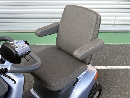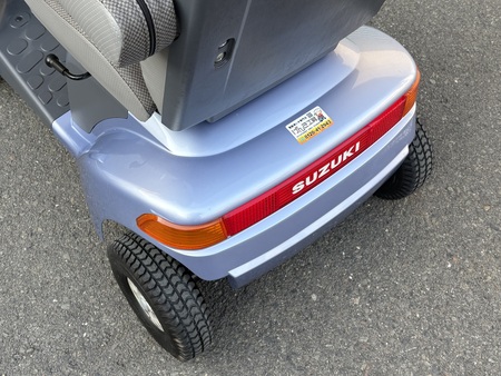 SUZUKI セニアカー ET4F Senior Car ET4F No.913 電動カート タイヤ溝がしっかり残っており、これからも長く乗れる一台です。 店舗 東大阪本店 保証 1年間 152,000円(非課税) 新車時定価/348,000円(非課税) 参考程度: 2009年式ですがまだまだ走ります!お買い物に便利なバスケット付き。 2009年式ですがまだまだ走ります!お買い物に便利なバスケット付き。 安全に配慮したサイドミラー付き。シールドレッグバックが風よけになり便利です。 パンクの心配がいらないノーパンクタイヤ仕様です。前輪10分山/後輪9分山あります! ハンドルに目立ったキズやひび割れ等はありません。パネルに日焼けがあります。 フロント部分に目立ったキズやひび割れ等はありません。 リアフェンダーにキズがあります。足元にキズの補修跡があります。 座/背シート、ひじ掛けに目立ったキズや汚れはありません。 リアフェンダー足元にキズの補修跡があります。 リアフェンダー側面にキズがあります。 バスケットはキレイです。 アームレストはキレイです。 座席は乗り降りが便利な座面回転式! 連続走行距離 ※ 約33km バッテリー 中古 車輪 前10分山(NP) / 後9分山(NP) 充電器 本体内蔵式 カラー ブルーシルバー サイズ 全長119.5×全幅65×全高108cm 重量 98kg 時速 約2~6km/h 充電時間 ※ 約0~12時間 年式 2009年 ※ 新車時データ(中古車につき、異なる場合があります。) 万一の紛失時も安心 スペアキー付き 後方の自動車などにLEDライトで存在をお知らせ 後方LEDライト 乗り降りラクラク 座面回転 ウレタン入りタイヤでパンクする心配不要! ノーパンクタイヤ 長距離走行が可能 大容量バッテリー搭載 曲がり方に応じて自動で減速 コーナー自動減速機能 急な飛び出しなどでレバーを握りこんだら急停止 握りこみ緊急停止機能 両側のミラーで後方確認 両側ミラー 後方の自動車などに存在をお知らせ 後方反射板 10° 7.5cm 10cm 0120-41-2943 06-7664-8812 関連パーツ・オプション 納品時説明サービス セニアカー用大型フロントバスケット スズキ用リヤバスケット セニアカー用ステッキホルダー取付プレート スズキ用ステッキホルダー(スズキ純正) スペーサーセット(ロング) 車体カバー(電動カート用) 車体カバー(電動カート用)中古品 延長コード(10m)